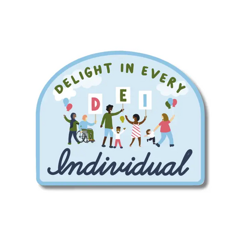 We don't just tolerate difference—we celebrate it! With a twist on the DEI acronym, this "Delight in Every Individual" sticker encourages you to value every person’s dignity with joy and intention.