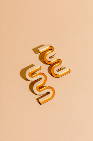 Part of Moon-Seed's Vea collection, meet: the Mini. These bold, two-tone, squiggle statement earrings offer a bold accent to your everyday outfit or compliment sophisticated formal wear.