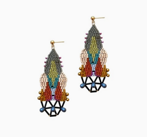These hand-beaded earrings are fashioned with lightweight Japanese Glass Beads in a pattern that invokes all the drama of Baroque stained glass.