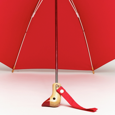 Available in a bright, solid red canopy, The Duckling is designed to brighten up rainy days while offering parents a safe, high-visibility, and eco-friendly choice they can trust—and kids will love.