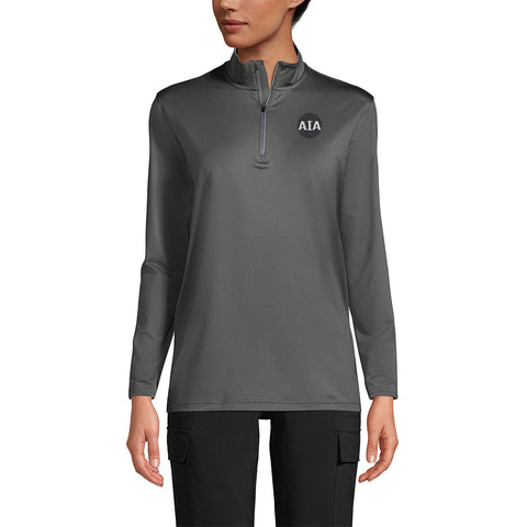This Lands' End quarter-zip pullover was designed with on-the-job performance in mind. It’s made with the most advanced moisture-wicking fabric which also stretches to move with you. Comes with the AIA Logo embroidered on the chest left side. The comfy collar features a chin guard at the top of the zipper to prevent chafing. 91% polyester/9% spandex. Machine wash.
