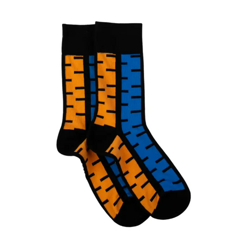 Brighten up your day with the new “Ruled Stripes” design— showcasing vibrant orange, blue, and magenta abstract staircase motifs. Inspired by geometric African patterns representing life’s non-linear path, these 200-needle fine-knit socks offer a modern, cultural statement with every comfortable step. The notched, vertical stripes in this design resemble the staircase or zigzag motifs found in Ashanti and Ndebele geometric art. In many West African traditions, these patterns symbolize the "path of life," reminding the wearer that one’s journey is rarely a straight line but full of dynamic movement and progression.