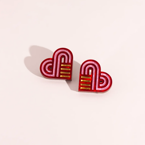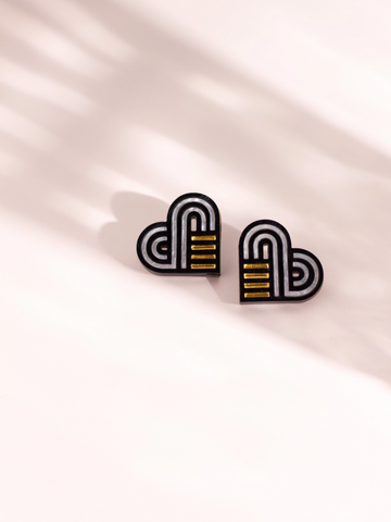The Cher statement studs feature a bold, fun, contemporary heart design. It is the perfect entry-level statement earring for dressing up or matching with a casual daily outfit. The contemporary line design and two-tone palette will brighten your outfit effortlessly.