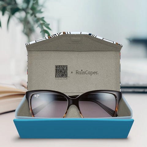 Brilliantly simple folding triangle case fits sunglasses and eyeglasses of all sizes. Matt, soft touch vegan leather features a stunning overall art print. Case is sturdy, yet folds flat for compact storage. Ultra-soft lining keeps glasses from scratching.