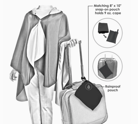 Celebrate classic style with this versatile travel cape – wear the elegant Pewter Grey side out for a timeless look; reverse to Black for a basic that pairs with any outfit. Each side is an elegant neutral you'll want to wear, drizzle or downpour.